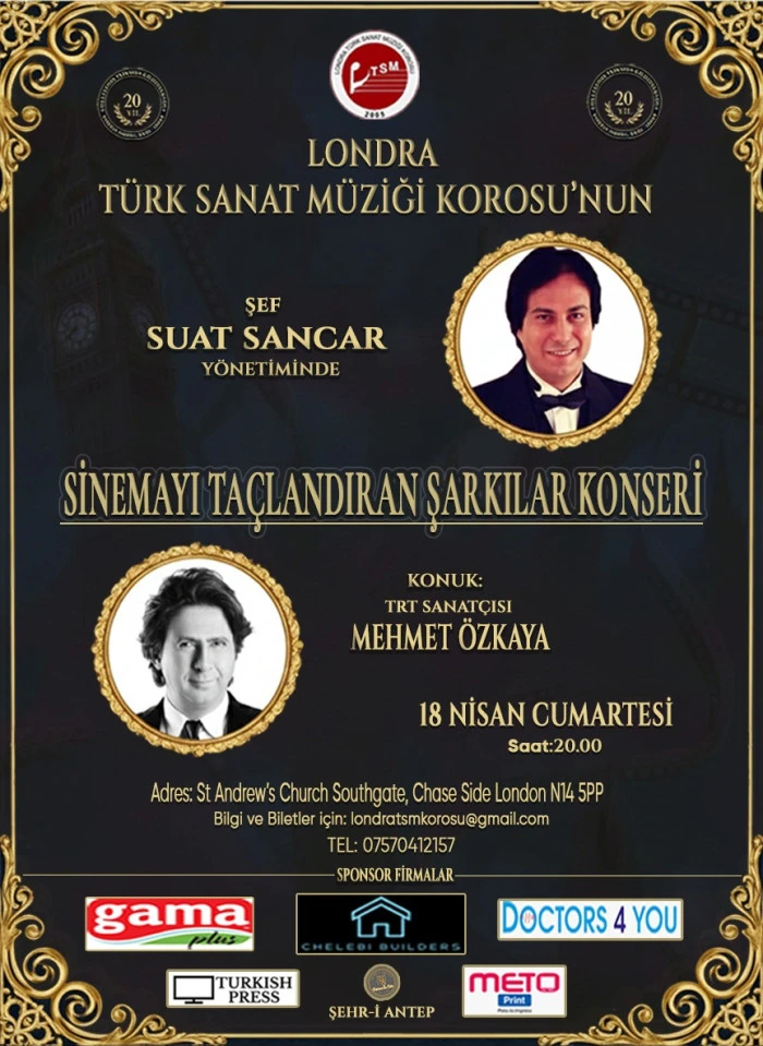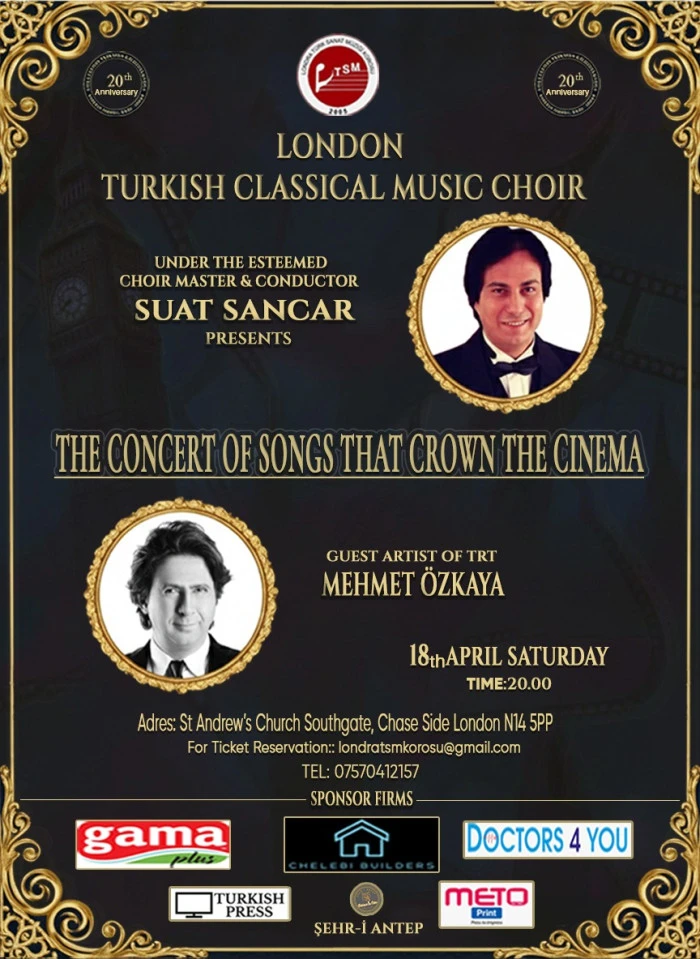 Londra Türk Sanat Müziği Korosu, Şef Suat Sancar yönetiminde, Yeşilçam’ın unutulmaz eserlerini Londralı müzikseverlerle buluşturuyor.