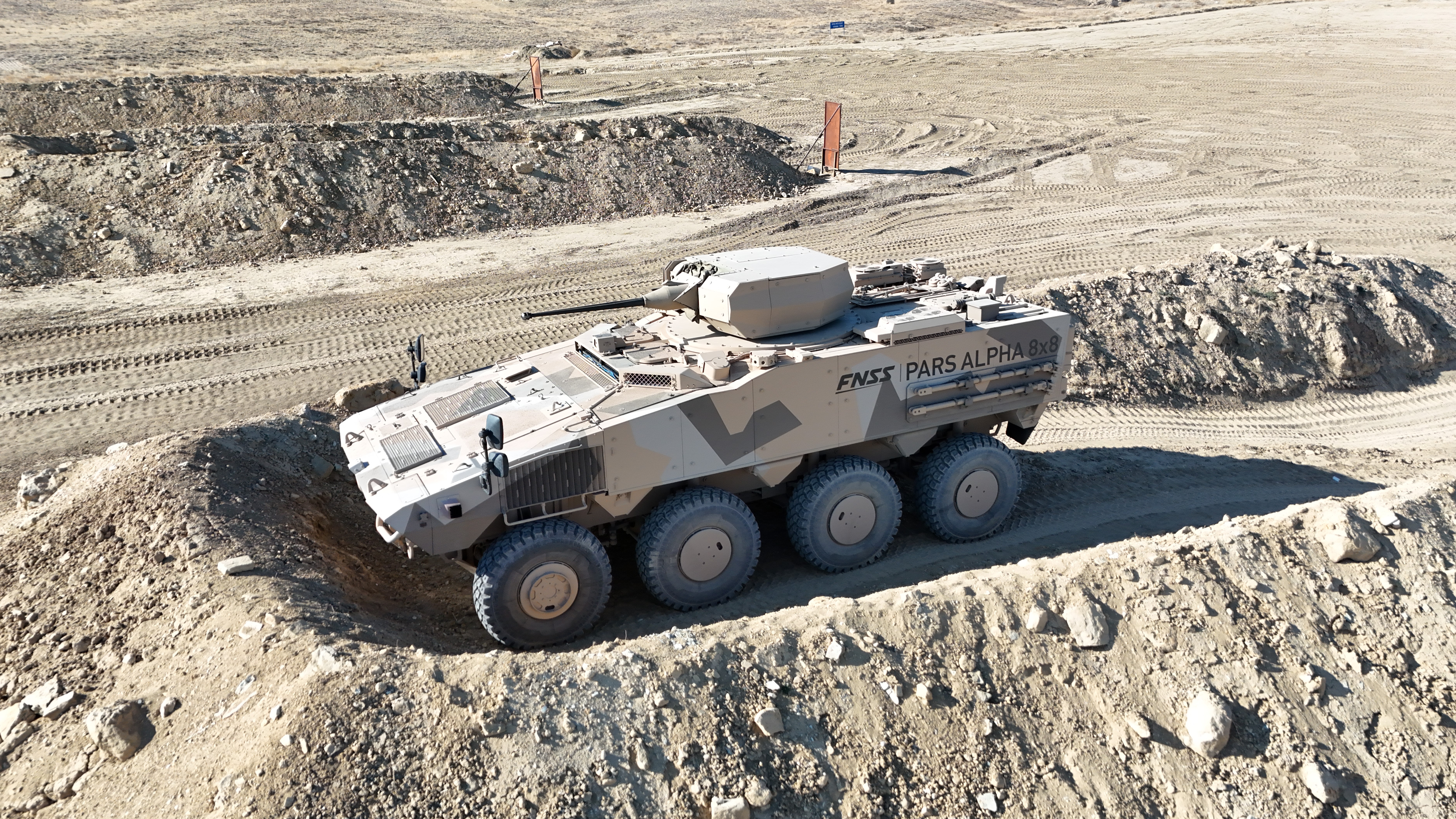 FNSS standında, TEBER-II 30/40 Uzaktan Komutalı Kule (UKK) entegre edilmiş PARS ALPHA 8x8 Yeni Nesil Tekerlekli Zırhlı Muharebe Aracı yer alacak.