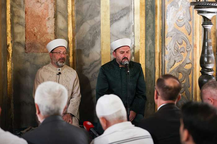Erbaş, namaz sonrası yaptığı konuşmada, en mutlu günlerden birinin idrak edildiğini belirterek, "Bundan üç sene önce 2020 yılı yine 24 Temmuz'da 86 yıllık hasret son bulmuştu. Sayın Cumhurbaşkanımızın kararıyla Ayasofya yeniden ibadete açılmıştı. İşte üç yıl geçti, üç yılda yapılan araştırmalara göre, Ayasofya'yı 21 milyon insan ziyaret etti" dedi.