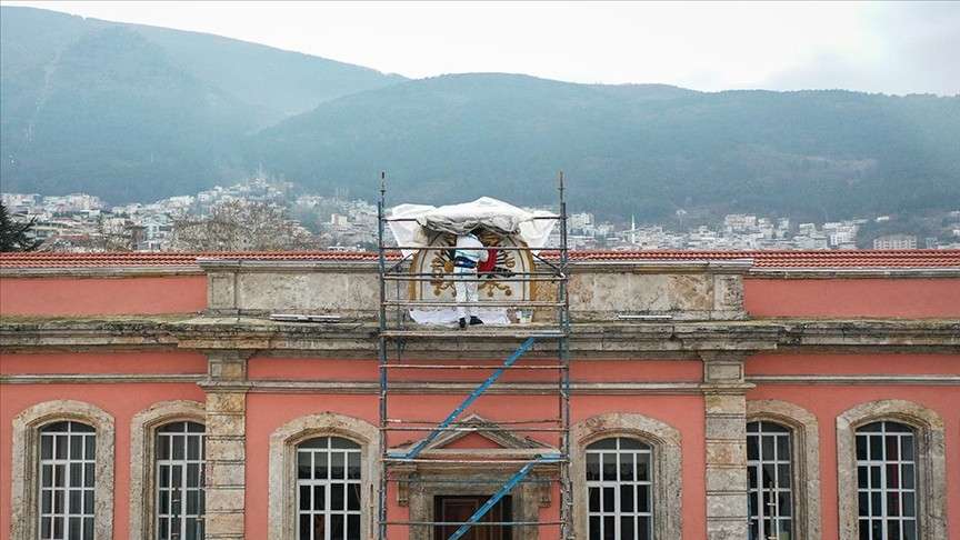 Bursa'daki "komutanlar ocağı"nın 131 yıllık Osmanlı arması ve kitabesi yenilendi