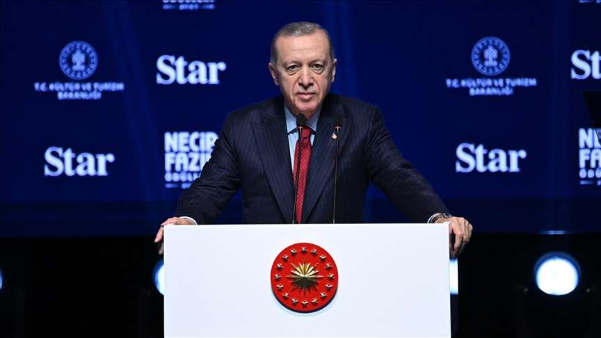 Cumhurbaşkanı Erdoğan, Atatürk Kültür Merkezi'nde düzenlenen Necip Fazıl Ödülleri programında konuşuyor.
