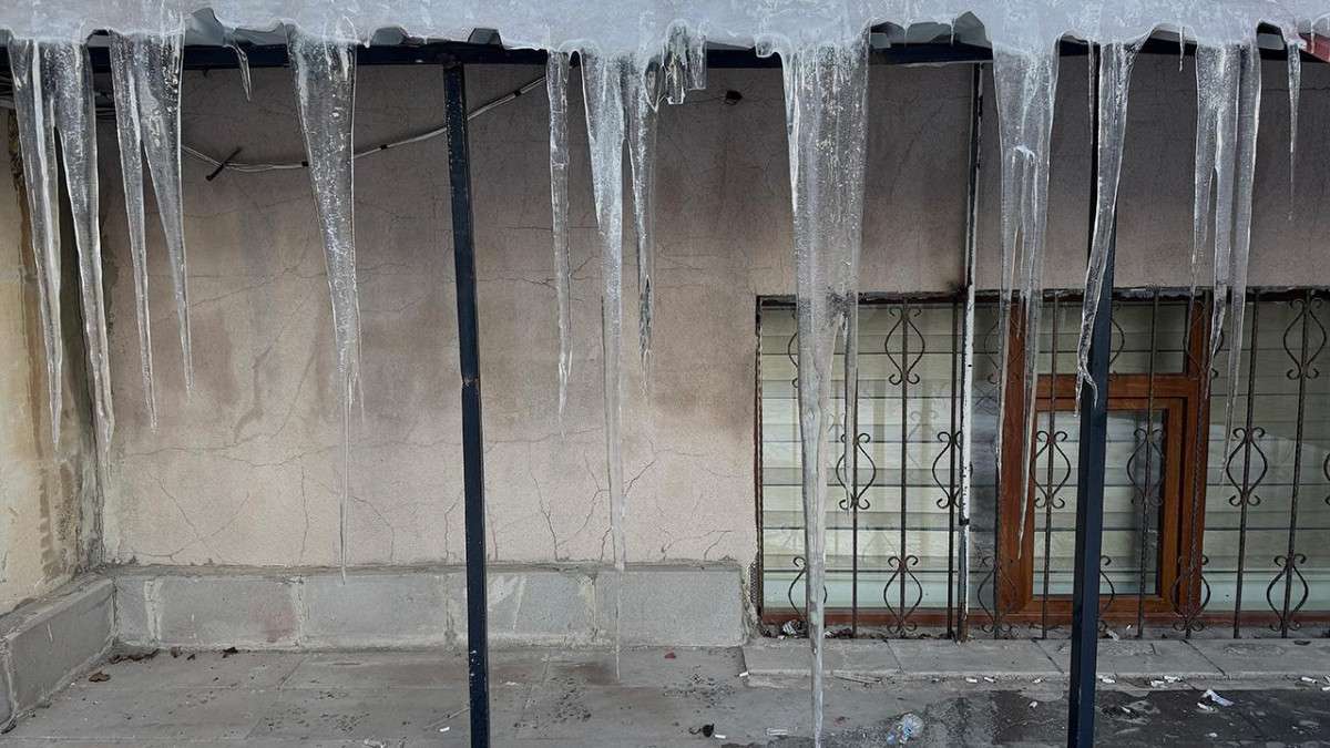 Şehir mezarlığındaki su deposunda metrelerce uzunlukta buz sarkıtları oluştu.
