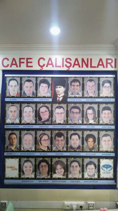 Bugün, 3'ü devlet projesi olarak çocuk esirgeme kurumundan ve 36 çalışan gence ulaşan Down Cafe ,sabah 8.30 da açılmakta ,gençlerin bir kısmı kendi başına ,diğerleri annelerinin yardımı ile saat 9.00 da 6 sar gruplar halinde ve 2 gönüllü anne ile gelip saat 16.30 da cafeyi terkettikten sonra , saat 17.30 kapanmaktadır.