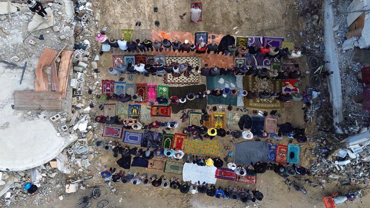 Gazze'de neredeyse sağlam cami veya mescit kalmaması nedeniyle Filistinlilerin bir kısmı da stadyum veya caddelerde cuma namazını kıldı.
