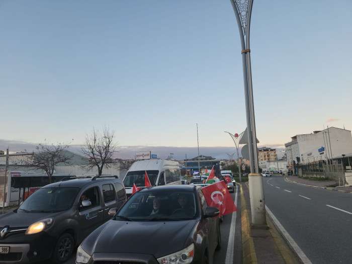 Gazze’deki mazlumların sesine ses verebilmek için Türkiye’nin dört bir yanından binlerce araç ve on binlerce vicdan sahibi Filistin dostları araç konvoyları yaparak mazlumların sesi oluyor.