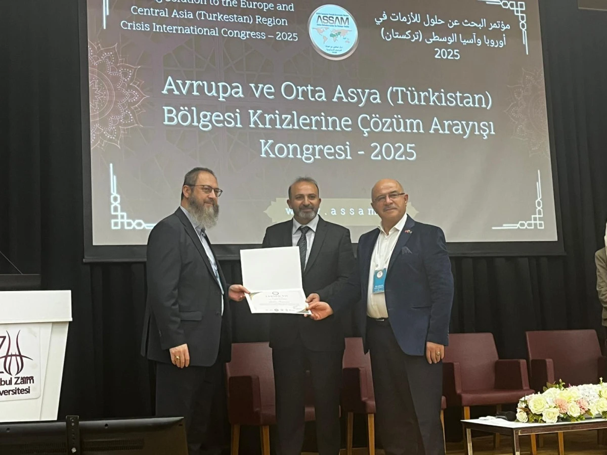 Karaçam, kongrede gerçekleştirdiği “Psikolojik Harp ve Bilgi Manipülasyonu: Türkistan’da Yeni Kuşatma Biçimleri” başlıklı sunumunun ardından kendisine takdim edilen sertifikayı aldı. Sertifika töreni, yoğun katılım ve ilgiyle takip edildi.
