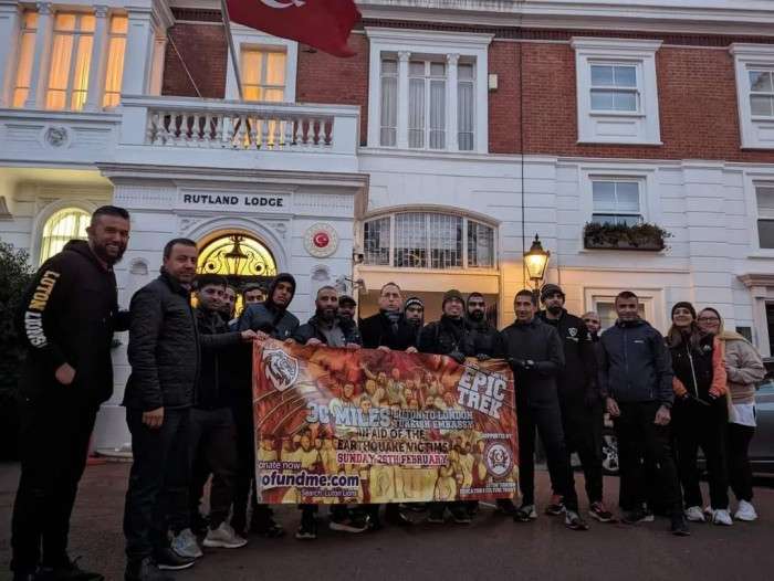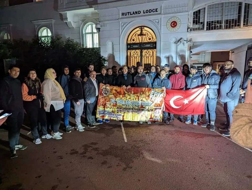Planlanan yürüyüş ile Canlı yayında Gofindme üzerinden yardım toplandı. Luton Türk Kültür Eğitim ve Kültür Merkezi ile Luton’da yaşayan Pakistan'lı Müslümanlar Luton’dan Londra'ya Türkiye Büyükelçiliğine yürüdü. Sabah erken saatlerinde başlayan yürüyüş yaklaşık 30 mile 50 km yaya olarak yüründü, 11 saat sürdü. Türkiye Cumhuriyeti Londra Başkonsolosluğu önünde son buldu.