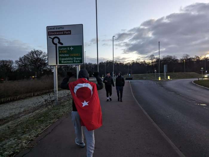 Luton Türk Kültür Eğitim ve Kültür Merkezi ile Luton’da yaşayan Pakistan'lı Müslümanlar Luton’dan Londra'ya Türkiye Büyükelçiliğine yürüyor.