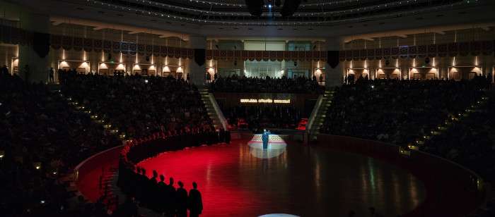Dün akşamki program Kur'an-ı Kerim tilavetiyle başladı.Takiben İstanbul Tarihi Türk Müziği Topluluğu ile birlikte Devlet Sanatçısı Ahmet Özhan bu yıl 44. kez Mevlana dostlarıyla buluştu. İlk kez 1980’de sahneye çıkan Özhan, 44 yıldır Şeb-i Arus törenlerinde Türk Tasavvuf Müziği’ni icra ediyor.