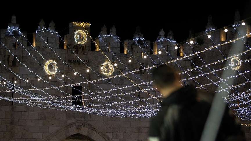 İşgal altındaki Doğu Kudüs’te Müslümanların ilk kıblesi olan Mescid-i Aksa’nın da içinde bulunduğu Eski Şehir bölgesinin Harem-i Şerif’e çıkan dar sokakları, caddeleri ve çarşıları, rengarenk ışıklar ve kandillerle süslendi.