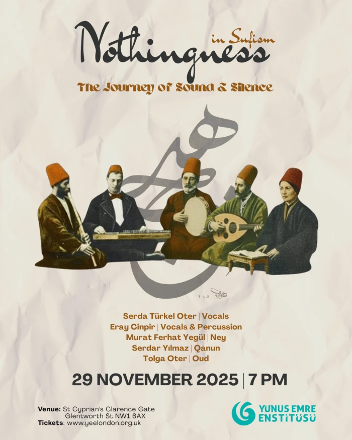 Etkinlik takvimi, 29 Kasım’da St Cyprian’s Clarence Gate’te düzenlenecek Tasavvufta Hiçlik: Ses ve Sessizliğin Yolculuğu konseriyle sona erecek. Serda Türkel Oter, Eray Cinpir, Murat Ferhat Yegül, Serdar Yılmaz ve Tolga Oter’in sahne alacağı bu özel performans, tasavvuf musikisinin evrensel diliyle hiçlik temasını sesin yükselip sessizliğe eridiği bir tecrübe hâline dönüştürecek. Müziğin son notasının ardından kalan sessizlik, serginin felsefi özünü adeta yankılayacak: varlığın hakikatinin sessizlikte saklı olduğu gerçeğini.