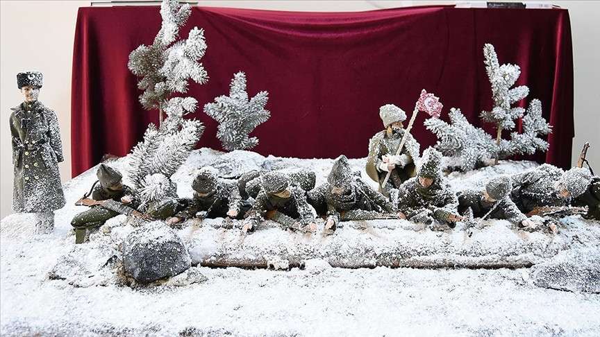 Kars'ta Kafkas Üniversitesi Güzel Sanatlar Fakültesi Tekstil ve Moda Tasarımı Bölümü Araştırma Görevlisi Dr. Emine Erdoğan, 1. Dünya Savaşı'nda Osmanlı ordusunun Rus işgali altındaki toprakları kurtarmak için başlattığı Sarıkamış Harekatı'nda yaşananları "minyatür asker" çalışmasıyla canlandırdı.