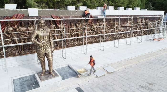 Restorasyon ve Yapım İşleri Grup Başkanlığı Şehitlikler ve Anıtlar Peyzaj Uygulamaları Koordinatörlüğünce titizlikle gerçekleştirilen peyzaj düzenlemelerinin yanı sıra belirlenen kısımlar yeşillendirilip zemin temizlendi.