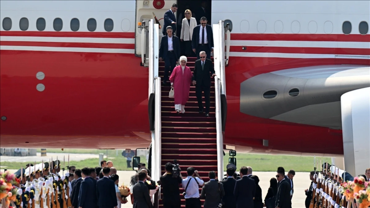 Erdogan was welcomed at Binhai International Airport by Chinese minister Lei Haichao, Türkiye's Ambassador to Beijing Selcuk Unal and embassy staff.