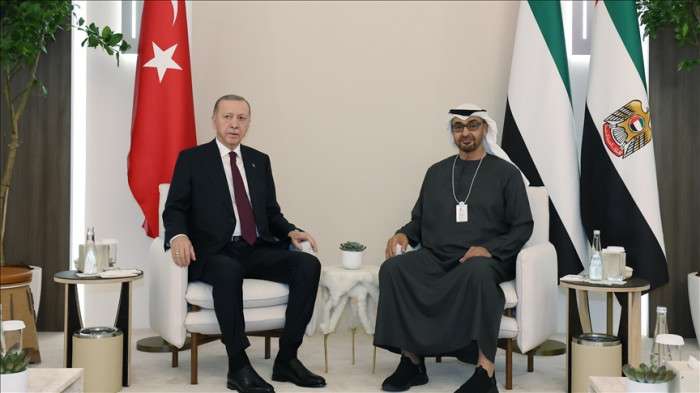 Turkish President Recep Tayyip Erdogan and his UAE counterpart Sheikh Mohamed bin Zayed Al Nahyan on Monday discussed the latest developments in Syria and Palestine, bilateral relations, as well as global and regional issues.