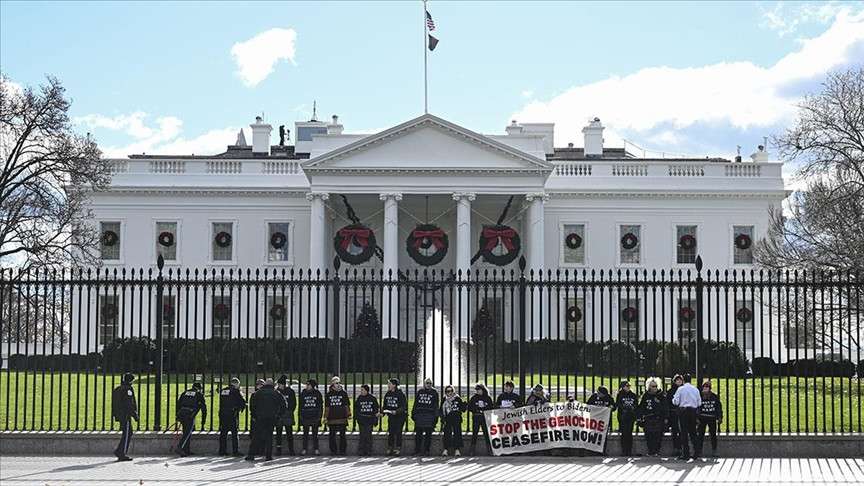Barış İçin Yahudi Sesi'nin (JVP) sosyal medya platformu X hesabından yapılan açıklamada, Biden'ın Beyaz Saray'da düzenleyeceği Yahudilerce kutsal Hanuka (Işıklar) Bayramı Partisi öncesi kendilerini Beyaz Saray'ın çitlerine zincirleyen 18 göstericinin "gizli servis" tarafından gözaltına alındığı duyuruldu.